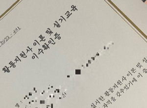 정말 알차게 잘 배웠던 것 같습니다. 각각의 장애인들의 특징과 대체법 그리고 실제 경험했던 것들을 위주로 교육을 받았기 때문에 알찬 수업이었습니다. 해외, 국내 유튜브에서 필요한 것들을 적절하게 교육받아서 너무 감사했습니다. 물론 교육비르 내고받았지만 졸지 않으려고 노력했었답니다. 저는 잠이 많은 사람인데 교육받는 기간에는 한 시간만 졸았던 것 같습니다. 왜냐하면 점심 먹고 난 후였는데 첫 번째 줄이라 영상 본다고 앞쪽에 불을 꺼서 조금 졸았답니다. 안 졸려고 해도 계속 인사했던 기억이 납니다. 강의자들은 실제 장애인들도 잇었습니다. 교육을 들어 보니 앞자리가 교육받기 좋은 것 같습니다. 강의선생님들 중에는 휠체어를 타고 오시는 선생님들도 계셔서 교육을 들으시려거든 앞자리를 추천합니다. 자리배정은 첫날에 앉았던 자리가 고정석이었고 두 시간마다 출석 체크를 했습니다. 교육 90%를 들어야 이수가 가능한다는 것 참고해 주시길 바랍니다. 32시간 중 3시간만 빠질 수 있으니 결석은 아예 안됩니다. 지각도 계산해서 저 3시간에 포함되는 것 같습니다. 시작시간인 9시를 넘겨서 지각 같으면 입실하기 전 사무실에 가서 먼저 출석 체크를 하는 것이 좋습니다. 교육을 마치고 일을 할 때에는 지원사가 거주하는 곳위주로 근처 기관에 연락을 하면 된다고 합니다. 그 기관리스트는 교육 마지막 날에 이수증과 함께 주셨습니다.